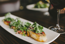 thinly sliced, flash-seared tenderloin, arugula, lemon aioli, parmesan cheese, on grilled crostini
